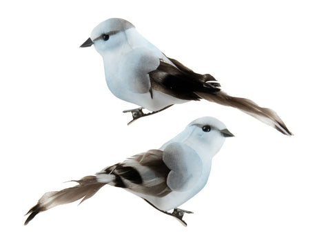 4.5" Grey & White Feather Clip Bird
