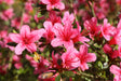 Azalea obtusum 'Silvester' is a delightful evergreen shrub that creates a dense, compact cluster of shiny green leaves. Starting in early May, it is covered with numerous small, funnel-shaped pink flowers, each featuring a deeper rosy-red throat. This compact plant is ideal for enhancing patio containers and serves as an excellent specimen for acidic borders, woodland gardens, and rockeries.