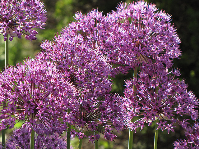 Giant Onion features bold balls of lightly-scented purple flowers at the ends of the stems from early to mid summer. The flowers are excellent for cutting. Its sword-like leaves remain green in colour throughout the season.
