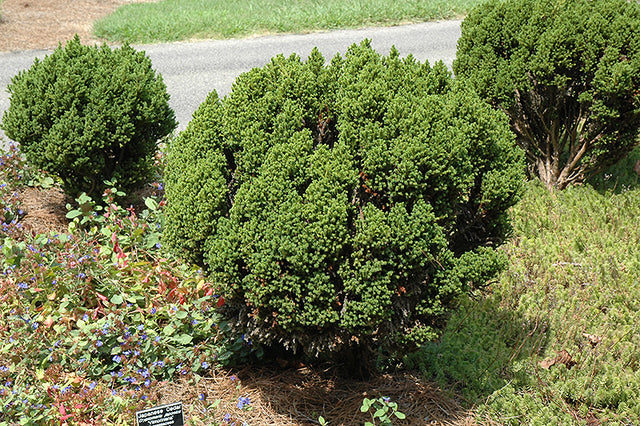 Vilmoriniana Japanese Cedar will grow to be about 24 inches tall at maturity, with a spread of 24 inches. It tends to fill out right to the ground and therefore doesn't necessarily require facer plants in front. It grows at a slow rate, and under ideal conditions can be expected to live for 40 years or more. This shrub does best in full sun to partial shade. It prefers to grow in average to moist conditions, and shouldn't be allowed to dry out. It is particular about its soil conditions, with a strong preference for rich, acidic soils, and is able to handle environmental salt. It is quite intolerant of urban pollution, therefore inner city or urban streetside plantings are best avoided, and will benefit from being planted in a relatively sheltered location. Consider applying a thick mulch around the root zone in winter to protect it in exposed locations or colder microclimates. This is a selected variety of a species not originally from North America.
