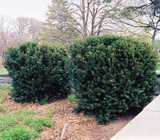 Hill's Yew is a dwarf conifer which is primarily valued in the landscape or garden for its decidedly oval form. It has dark green evergreen foliage which emerges light green in spring. The ferny sprays of foliage remain dark green throughout the winter.