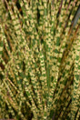 Gold Bar Maiden Grass will grow to be about 4 feet tall at maturity, with a spread of 4 feet. It tends to be leggy, with a typical clearance of 1 foot from the ground, and should be underplanted with lower-growing perennials. It grows at a medium rate, and under ideal conditions can be expected to live for approximately 20 years. As an herbaceous perennial, this plant will usually die back to the crown each winter, and will regrow from the base each spring. Be careful not to disturb the crown in late winter when it may not be readily seen!