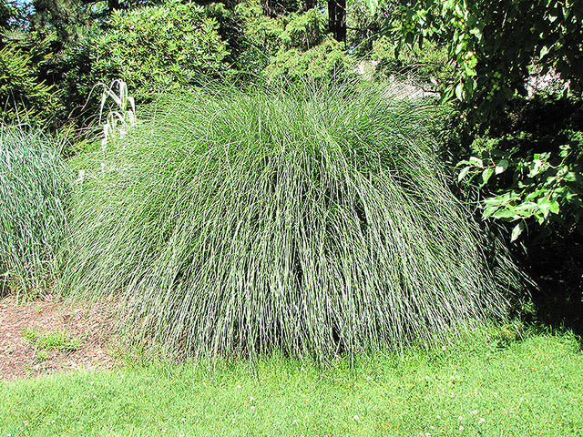 Yaku Jima Dwarf Maiden Grass will grow to be about 3 feet tall at maturity extending to 4 feet tall with the flowers, with a spread of 3 feet. It has a low canopy with a typical clearance of 1 foot from the ground. It grows at a medium rate, and under ideal conditions can be expected to live for approximately 20 years. As an herbaceous perennial, this plant will usually die back to the crown each winter, and will regrow from the base each spring. Be careful not to disturb the crown in late winter when it may not be readily seen!