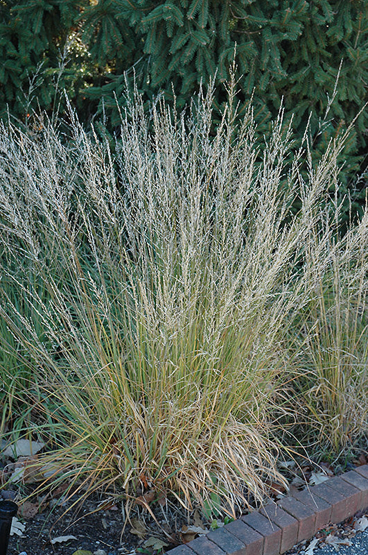 Moorflame Moor Grass will grow to be about 18 inches tall at maturity extending to 3 feet tall with the flowers, with a spread of 32 inches. Its foliage tends to remain dense right to the ground, not requiring facer plants in front. It grows at a slow rate, and under ideal conditions can be expected to live for approximately 15 years. As an herbaceous perennial, this plant will usually die back to the crown each winter and will regrow from the base each spring. Be careful not to disturb the crown in late winter when it may not be readily seen!