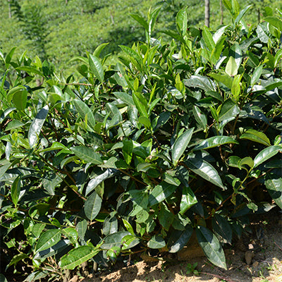 Camellia sinensis ‘Large Leaf’ produces extra large, leathery, serrated leaves up to 6 inches long and 3 inches wide. White, cup-shaped flowers are produced in large quantities in late summer and fall which form nickel sized fruit.