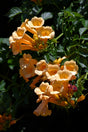 Yellow Trumpetvine will grow to be about 40 feet tall at maturity, with a spread of 24 inches. As a climbing vine, it tends to be leggy near the base and should be underplanted with low-growing facer plants. It should be planted near a fence, trellis or other landscape structure where it can be trained to grow upwards on it, or allowed to trail off a retaining wall or slope. It grows at a fast rate, and under ideal conditions can be expected to live for approximately 20 years.