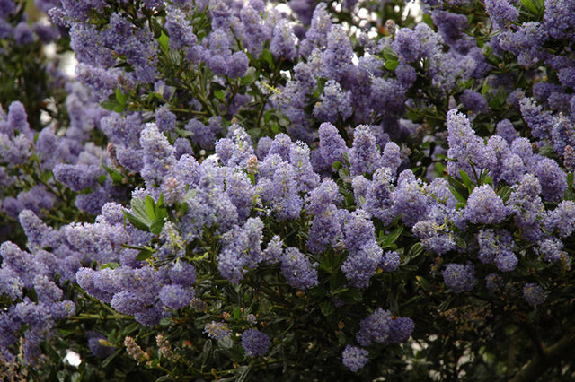 Victoria California Lilac is bathed in stunning cymes of lightly-scented powder blue star-shaped flowers along the branches from mid to late spring. It has attractive dark green evergreen foliage. The glossy oval leaves are highly ornamental and remain dark green throughout the winter.