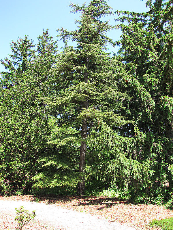 The Cedar of Lebanon will grow to be about 50 feet tall at maturity, with a spread of 70 feet. It has a low canopy with a typical clearance of 4 feet from the ground, and should not be planted underneath power lines. It grows at a slow rate, and under ideal conditions can be expected to live to a ripe old age of 150 years or more; think of this as a heritage tree for future generations!