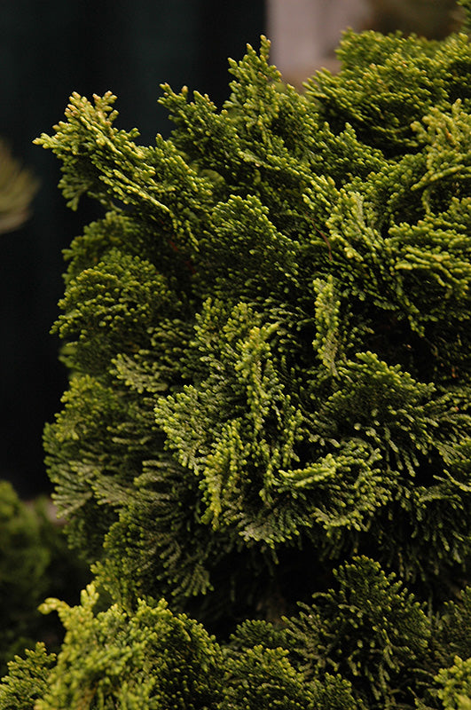 Dwarf Hinoki Falsecypress will grow to be about 4 feet tall at maturity, with a spread of 4 feet. It tends to fill out right to the ground and therefore doesn't necessarily require facer plants in front. It grows at a medium rate, and under ideal conditions can be expected to live for 40 years or more. This shrub does best in full sun to partial shade. It prefers to grow in average to moist conditions, and shouldn't be allowed to dry out. It is not particular as to soil type or pH. It is highly tolerant of urban pollution and will even thrive in inner city environments, and will benefit from being planted in a relatively sheltered location. Consider applying a thick mulch around the root zone in winter to protect it in exposed locations or colder microclimates. This is a selected variety of a species not originally from North America.