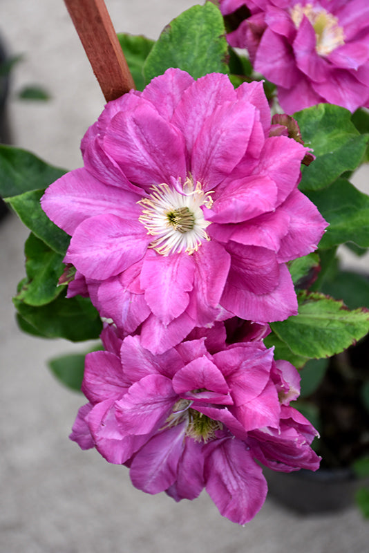 This woody vine should only be grown in full sunlight. It does best in average to evenly moist conditions, but will not tolerate standing water. It is not particular as to soil type or pH. It is somewhat tolerant of urban pollution. Consider applying a thick mulch around the root zone in both summer and winter to conserve soil moisture and protect it in exposed locations or colder microclimates. This particular variety is an interspecific hybrid.