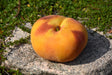 Galaxy Peach will grow to be about 15 feet tall at maturity, with a spread of 15 feet. It has a low canopy with a typical clearance of 2 feet from the ground, and is suitable for planting under power lines. It grows at a medium rate, and under ideal conditions can be expected to live for 40 years or more. This is a self-pollinating variety, so it doesn't require a second plant nearby to set fruit.