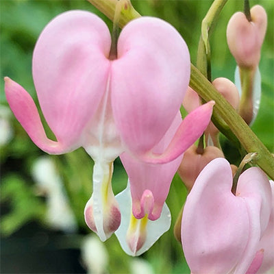 Cupid Bleeding Heart is a version of the classic bleeding heart with soft, baby-pink outer petals over white inner ones that form pendulous hearts that hang from the elegantly arching stems. Blooms beautifully and elegantly in the spring garden. May go dormant in summer if soils are dry.