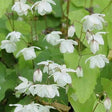 Alabaster Barrenwort is a compact, clump-forming, evergreen to semi-evergreen perennial with pinnate leaves divided into ovate, toothed, bright green leaflets and slender, wiry stems bearing short, open racemes of small, white flowers in spring.