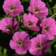 Penny's Pink Cranebill produces a profusion of sizable pink blossoms marked with dark veins, blooming continuously from spring through to the first frost. Its dense, dark green foliage remains visually appealing throughout the growing season, making it an excellent choice for borders, containers, and hanging baskets.