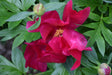 Scarlet Heaven Itoh Peony features bold lightly-scented semi-double scarlet flowers with gold anthers at the ends of the stems in late spring. The flowers are excellent for cutting. Its compound leaves remain green in colour throughout the season.