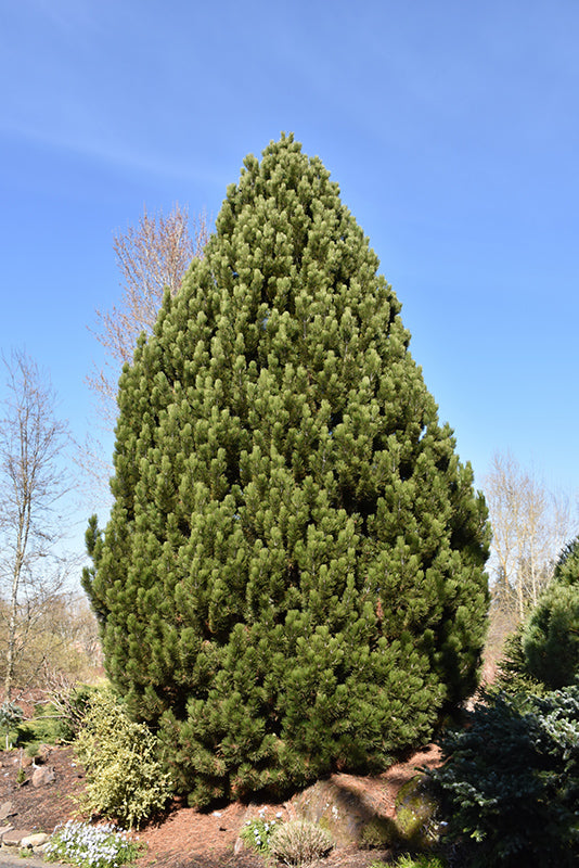 Compact Gem Bosnian Pine will grow to be about 12 feet tall at maturity, with a spread of 8 feet. It tends to fill out right to the ground and therefore doesn't necessarily require facer plants in front, and is suitable for planting under power lines. It grows at a medium rate, and under ideal conditions can be expected to live for 60 years or more.