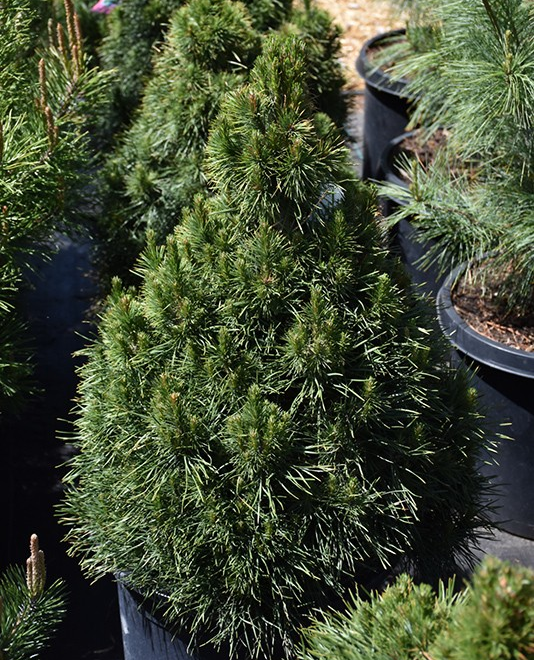 Green Penguin Scotch Pine is a dense multi-stemmed evergreen shrub with a narrowly upright and columnar growth habit. Its relatively fine texture sets it apart from other landscape plants with less refined foliage.