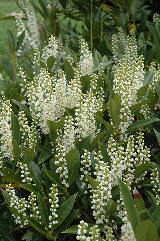 Otto Luyken Dwarf Cherry Laurel will grow to be about 4 feet tall at maturity, with a spread of 7 feet. It tends to fill out right to the ground and therefore doesn't necessarily require facer plants in front. It grows at a medium rate, and under ideal conditions can be expected to live for 50 years or more.