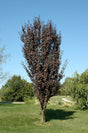 Crimson Pointe Plum will grow to be about 20 feet tall at maturity, with a spread of 8 feet. It has a low canopy with a typical clearance of 3 feet from the ground, and is suitable for planting under power lines. It grows at a medium rate, and under ideal conditions can be expected to live for approximately 30 years.