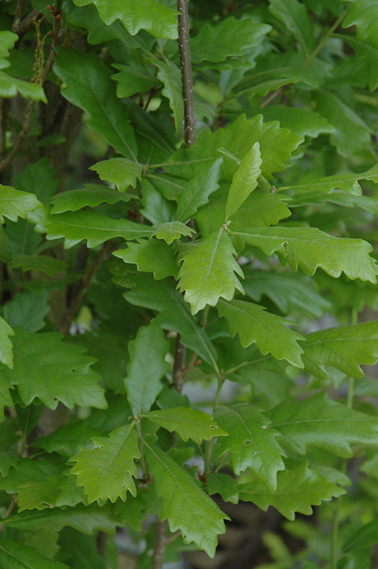 Regal Prince English Oak has dark green deciduous foliage on a tree with an oval habit of growth. The lobed leaves do not develop any appreciable fall colour. However, the fruit can be messy in the landscape and may require occasional clean-up.