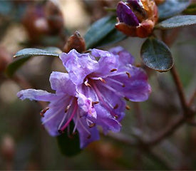 Moerheim Beauty Rhododendron flower is funnel-shaped, 1⅛" across, and vivid violet, with pink-stripes on outside. The truss has 2-3 flowers.