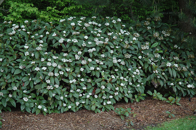 David Viburnum is a multi-stemmed evergreen shrub with a mounded form. Its relatively coarse texture can be used to stand it apart from other landscape plants with finer foliage.