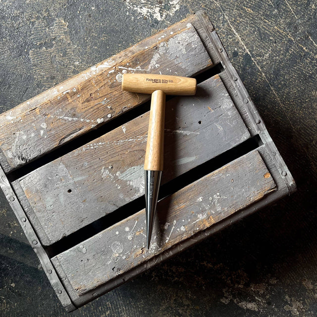 Designed by Farmer’s Son Co., this Garden Dibber is a testament to craftsmanship and thoughtful design, created for those who appreciate the rhythm of the garden. Whether you’re sowing seeds, spacing transplants or tending to raised beds, this tool offers precision and ease with every press into the soil. Handcrafted for durability and comfort, the dibber features a smooth ash wood handle that fits naturally in hand, allowing for effortless work. Its stainless steel tip ensures accuracy, cutting cleanly into the earth to create the perfect planting depth. Designed for gardeners who value both function and beauty, it’s a tool that feels as good to use as it looks. An heirloom-quality piece meant to be passed down through seasons, the Farmer’s Son Co. Garden Dibber will develop a rich patina with use. To maintain its integrity, store in a dry place and occasionally treat the head and ash handle with mineral or linseed oil to preserve its natural beauty.
