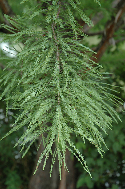 Shawnee Brave Swamp Cypress or Bald Cypress is primarily valued in the landscape for its rigidly columnar form. It has emerald green deciduous foliage. The ferny bipinnately compound leaves turn an outstanding orange in the fall. The shaggy antique red bark adds an interesting dimension to the landscape.