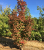 The Three Cheers Vine Maple features an upright, flame-like form, resembling more of a tree than the typical species. It has distinctively narrow branching angles and grows to be twice as tall as it is wide. Its deep green foliage transforms into striking yellow-orange hues in the fall, making it a standout choice for seasonal color.