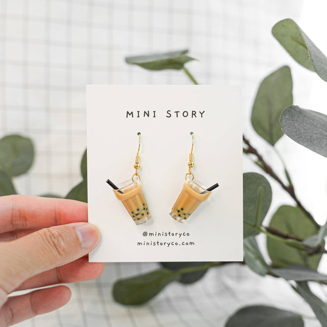 The Bubble Milk Tea earrings are the perfect accessory for boba lovers. These adorable miniature boba charms are hand crafted and made to look just like real bubble tea, so you can wear your favourite drink everywhere you go. Whether you're treating yourself or giving as a gift, these earrings are sure to put a smile on everyone's face.