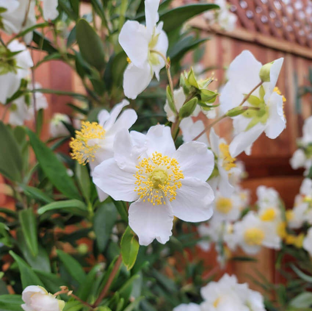 The Elizabeth Bush Anemone is a more compact variety than the typical species, reaching up to 6 feet in height and 3 feet in width. Its blossoms are smaller, approximately 1.5 inches across, yet this cultivar produces a greater abundance of flowers that maintain the same pleasing fragrance. Blooms appear in clusters of as many as 20. This cultivar honours California botanist Elizabeth McClintock (1912–2004).