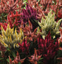 A mix of spikey blooms in orange, purple, red, salmon, terracotta, and white. The Celway celosia series is known for its long vase life, strong stems, and small top leaves. One central plum is surrounded by several smaller spikes for a well-filled look. Suitable for dense plantings in a greenhouse, high tunnel, or field/garden. 102-122cm (40-48") height. Pinch at seedling stage to induce branching.