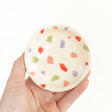Petite ceramic jewelry dish with hand painted speckled pattern.
