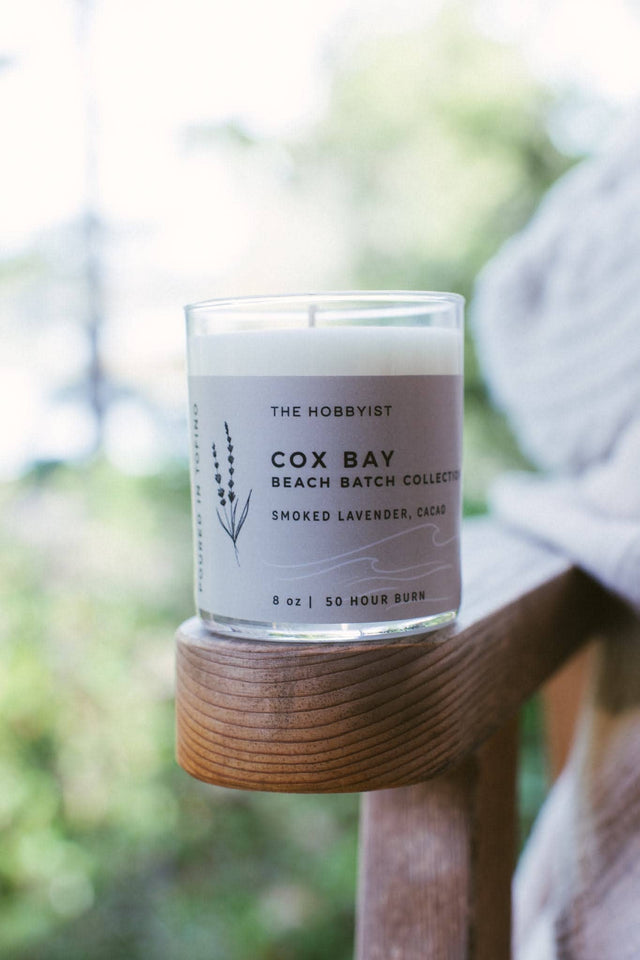 The Cox Bay Candle has aromas of smoked lavender and cocoa. Inspired by it's big open bay where the waves crash hard. The beach is usually pumping with good sets and better surfers. Breathe in the 360 degrees of wild forest, mountain peaks, white caps, and sandy beaches. Handcrafted in small batches from the small surf town of Tofino on Vancouver Island.