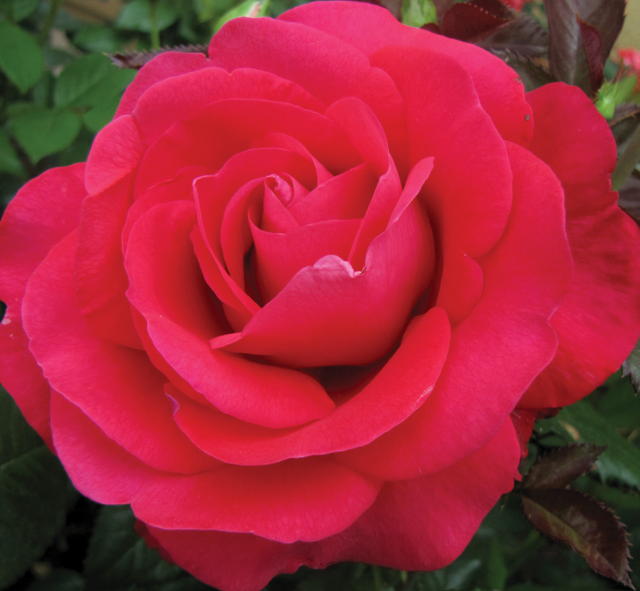 Red is the colour of love and you will certainly fall in love with the medium even red of In Love Again. The grandeur of this beauty is undeniable with its 4 to 5 inch blooms and an impressive petal count of 30 to 45. This rose stands out with its elegant, upright yet slightly spread manner and dark very glossy green foliage. This rose shows robust disease resistance particularly against powdery mildew and rust, while showing admirable resilience against downy mildew and black spot. The ideal for zones 6 to 10, it can also be grown in zone 5 under the right conditions.