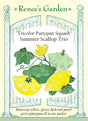 This mixed seed packet offers an easy way to grow a delicious trio of different colored pattypan squashes. Buttercup-yellow fluted “Sunburst” is tender and nutty tasting simply steamed or poached in broth. Dark green, glossy little “Starship” has zucchini colour and flavor in a unique flying saucer shape. Pretty apple-green “Peter Pan” scallops are creamy and sweet fleshed – a treat to sauté or slice and grill.
