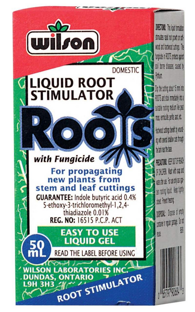 Liquid root stimulator contains a special formulation that stimulates rapid root growth on softwood and hardwood cuttings. The fungicide in 'roots' protects against soil borne diseases, caused by pythium.